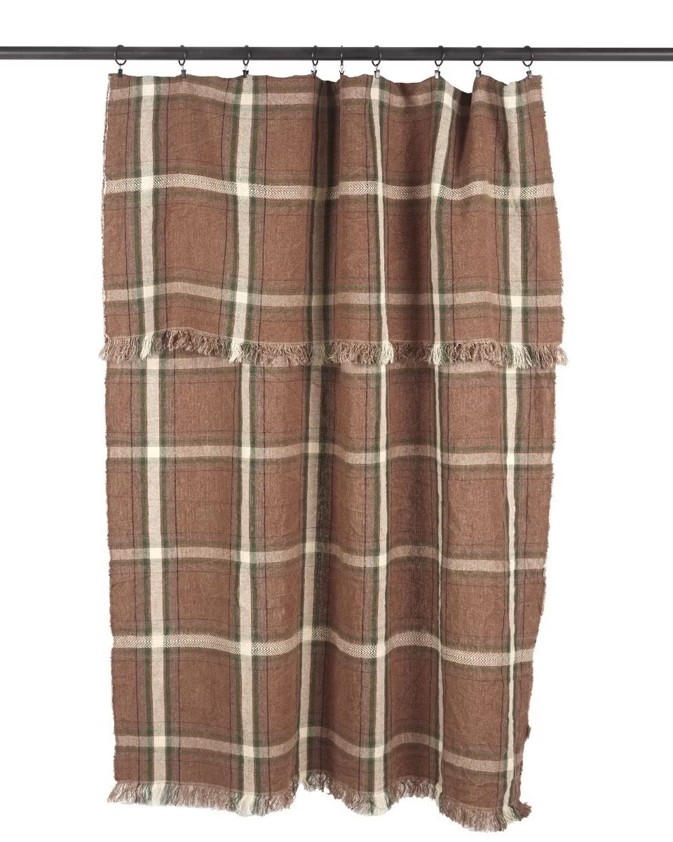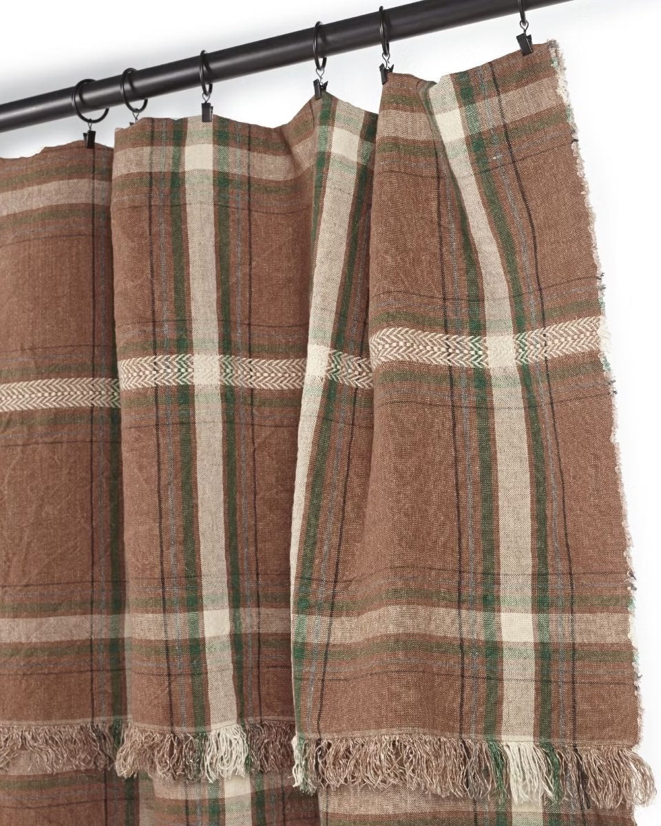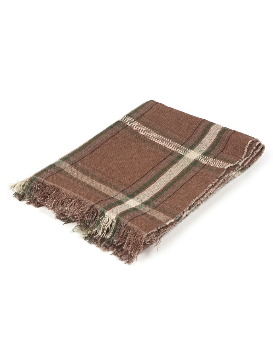 Son motif tartan revisité mêle subtilement des tons bruns profonds, vert anglais, anthracite et blanc cassé, créant un jeu de carreaux audacieux et raffiné. Chaque regard y découvre une harmonie de couleurs qui rappelle les forêts d’automne et les intérieurs chaleureux où l’on aime se retrouver.