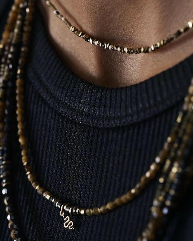 Collier et Bracelet 6 tours, VERO - Noir Rock Mat