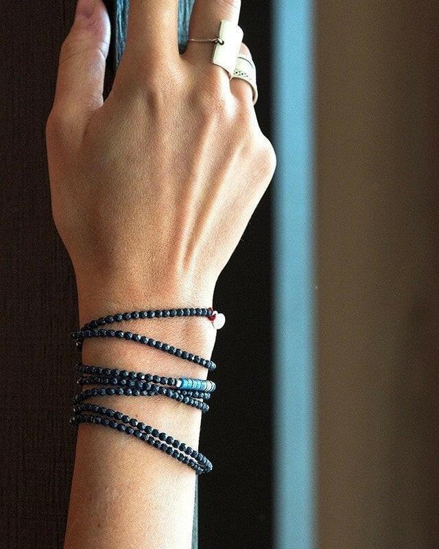 Collier et Bracelet 3 tours, Zuri - Noir Mat