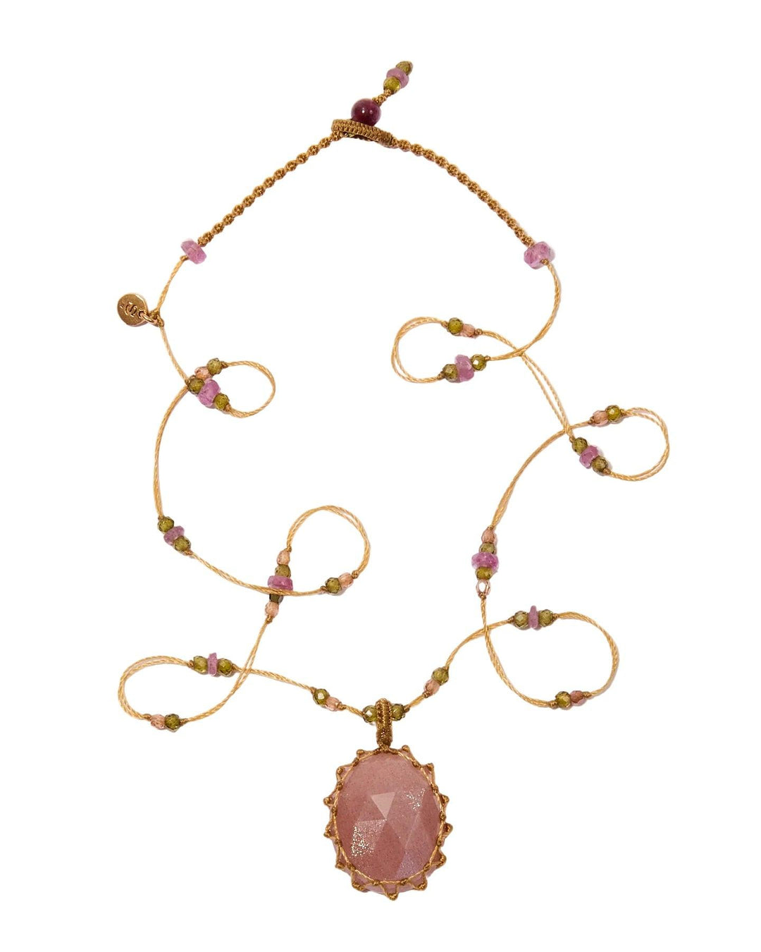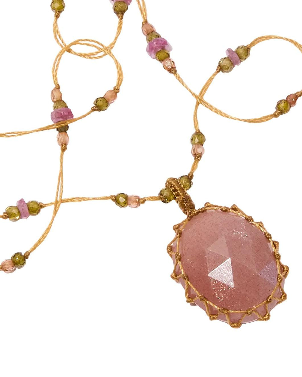 Short Tibetan Necklace, Pink Moon Stone