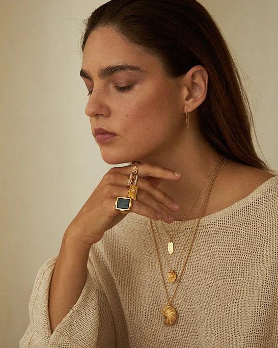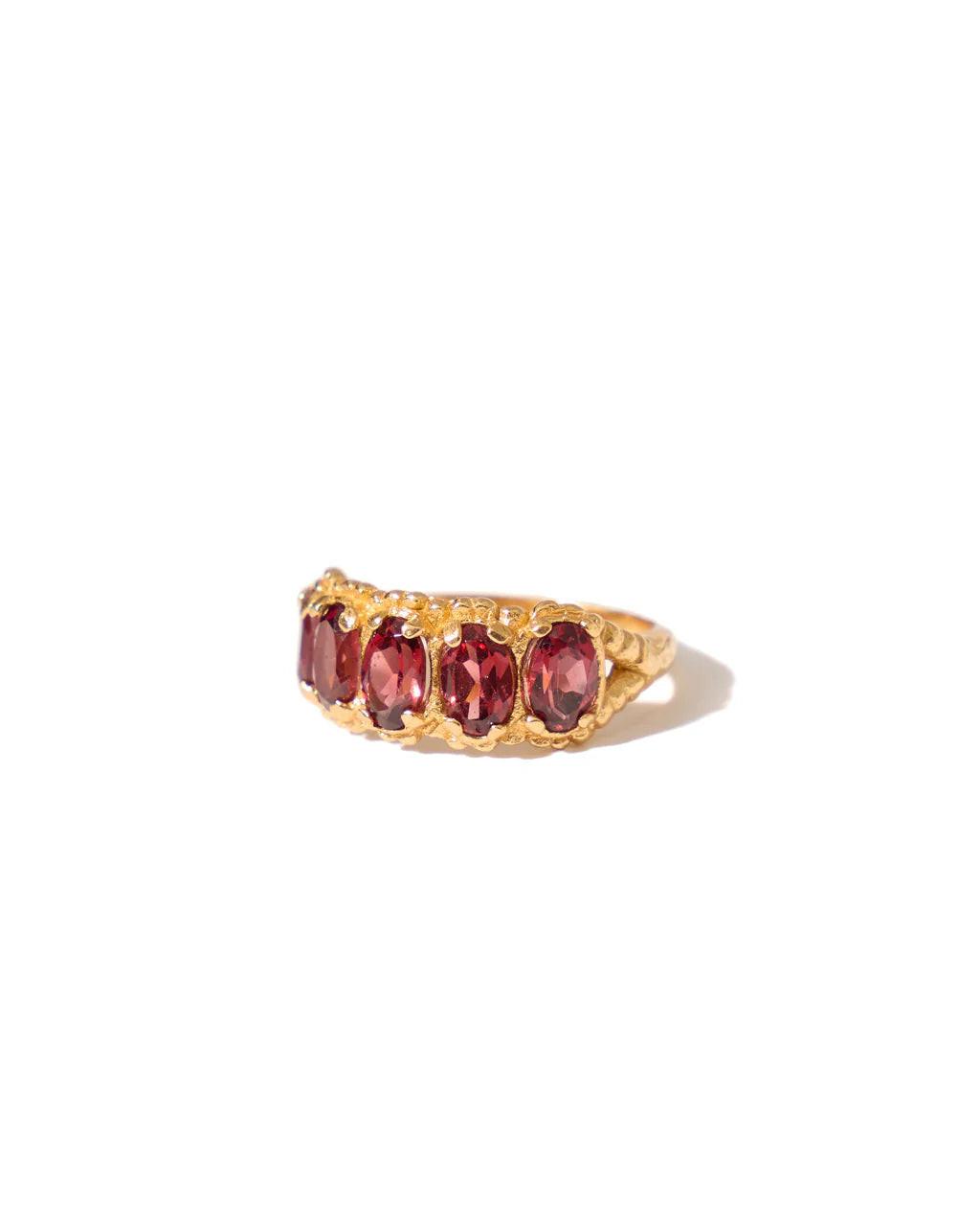 The Cassie ring captivates with its vintage and refined look. Its 18-carat gold-plated brass band is adorned with burgundy zircon stones, prized for their brilliance and protective symbolism, bringing balance and serenity.