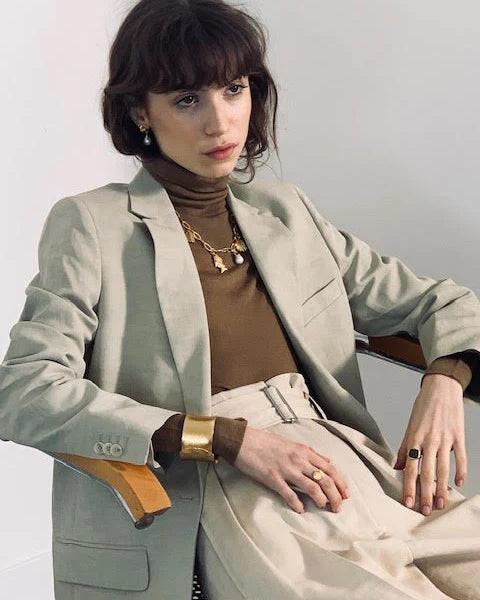 The Delphine ring captivates with its timeless design and natural elegance. Set on an 18-karat gold-plated brass base, it showcases a hematite stone with deep reflections, creating a piece of jewelry that is both understated and assertive.