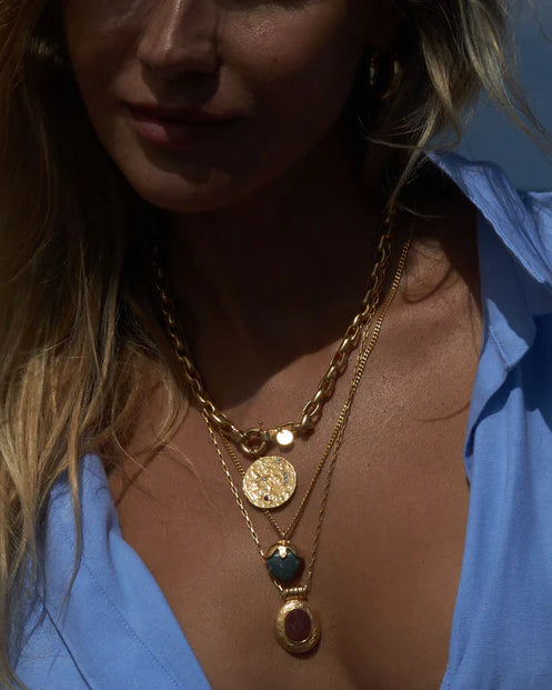 Apportez une touche élégante et intemporelle à vos tenues avec le collier Bailee. Son pendentif en jaspe rouge style antique, comme trouvé un dimanche matin sur un marché parisien, évoque raffinement et authenticité. Le jaspe rouge est traditionnellement associé à l’endurance, la force et la protection. Portez-le seul pour un accent délicat ou combinez-le avec d’autres colliers pour un effet layering raffiné.