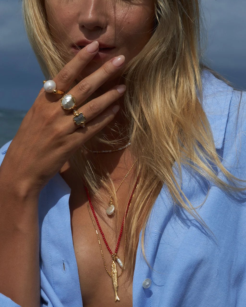 Le corail et les perles offrent un mélange de textures naturelles et lumineuses, apportant à la fois élégance et personnalité. Les perles d’eau douce, issues de cultures contrôlées, présentent une forme baroque unique, parfaite pour les femmes audacieuses qui aiment se démarquer.