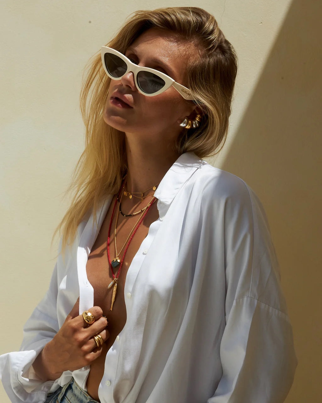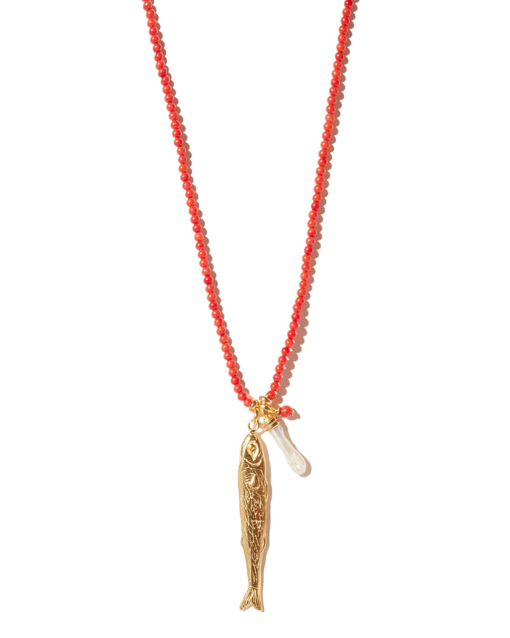 Apportez une touche de poésie et de raffinement à votre tenue avec le collier Polly. Son pendentif poisson plaqué or associé à un fil de corail rouge symbolise la passion et le courage, tandis que le poisson incarne l’harmonie, l’abondance, le bonheur, le renouveau, l’amour et l’équilibre entre esprit et émotion. À porter seul pour un look délicat ou en superposition pour un effet plus affirmé, ce collier est à la fois charmant et intemporel.
