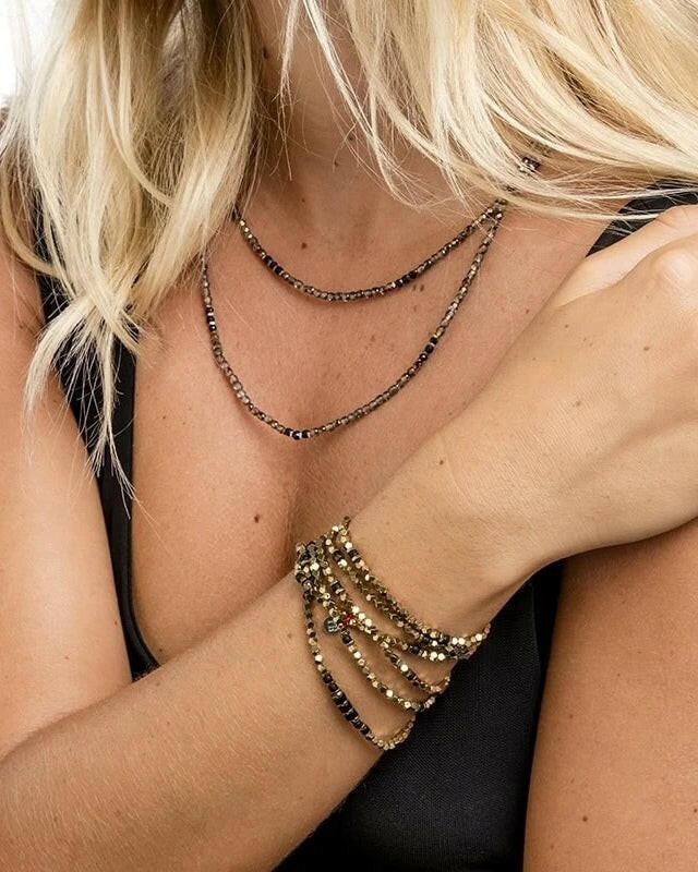 Necklace and Bracelet 6 turns, SANTA - Hematite Gold