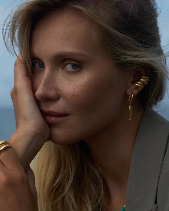 Apportez une touche délicate et lumineuse à votre look avec les boucles d’oreilles Riva. Leur design minimaliste et raffiné en laiton plaqué or 18K offre un équilibre parfait entre élégance intemporelle et sophistication moderne. À porter seules pour un style subtil ou associées à d’autres bijoux pour un effet layering, elles deviennent un incontournable de votre collection.