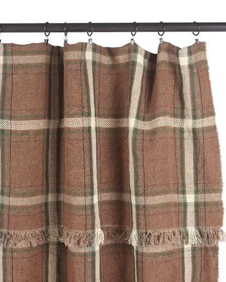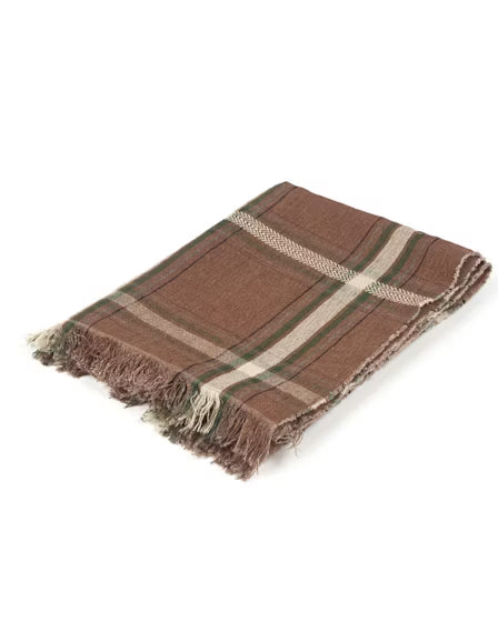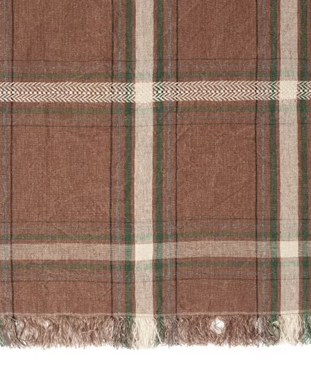 Son motif tartan revisité mêle subtilement des tons bruns profonds, vert anglais, anthracite et blanc cassé, créant un jeu de carreaux audacieux et raffiné. Chaque regard y découvre une harmonie de couleurs qui rappelle les forêts d’automne et les intérieurs chaleureux où l’on aime se retrouver.