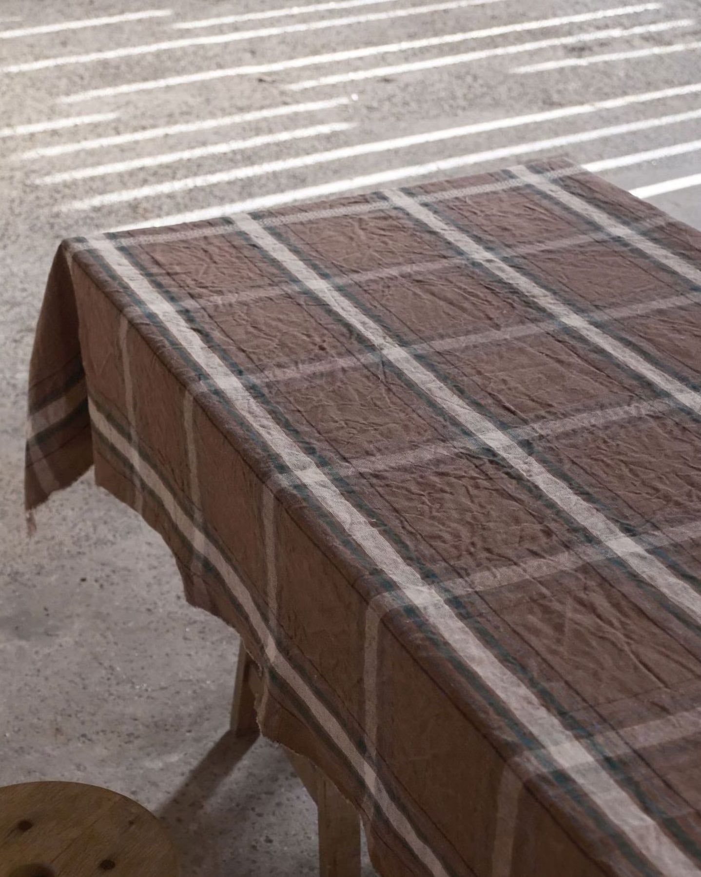 Polyvalente et élégante, la pièce de lin Rowan Check se prête à de multiples usages, mais c’est en nappe qu’elle révèle toute sa beauté. Son motif à carreaux mêle des tons bruns Sienne, verts profonds, anthracite et ivoire, pour une ambiance à la fois chaleureuse et contemporaine. Sur une table en bois, elle pose d’emblée un esprit convivial et raffiné, typique de l’univers HALO.